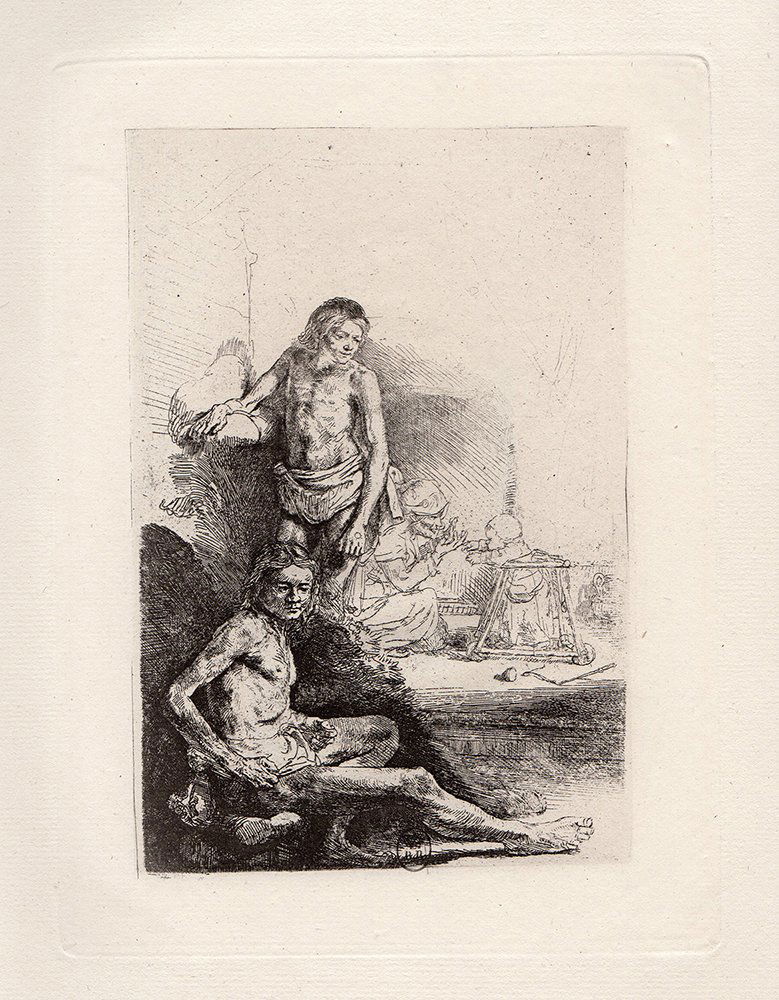 Rembrandt Two Young Men etching 1800's