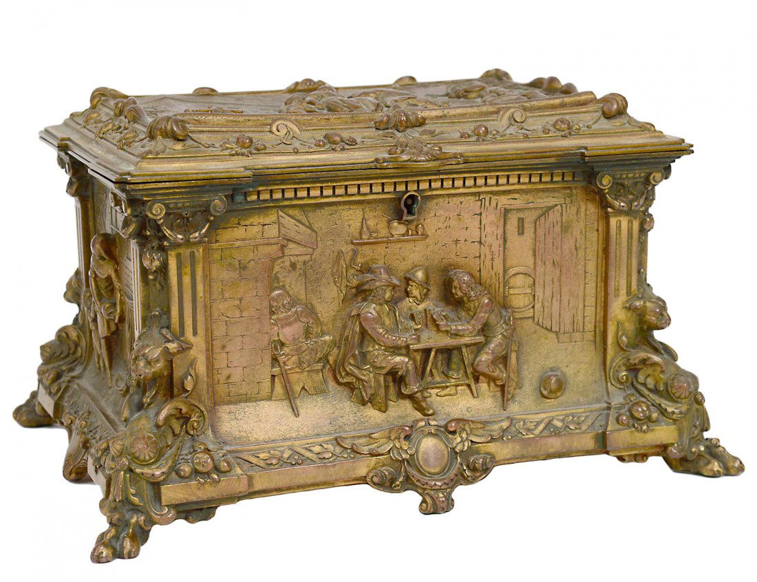 DUTCH BRASS-CLAD TAVERN SCENE REPOUSSE COAL BIN / BOX, 17.5"HAustin Auction Gallery4.7(1.2k)$1007 days Left