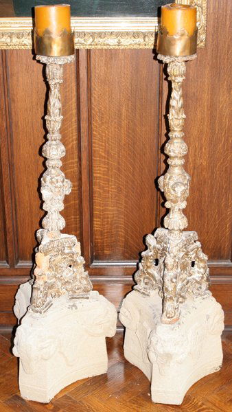 RENAISSANCE STYLE GILT WOOD CANDLESTICKS,