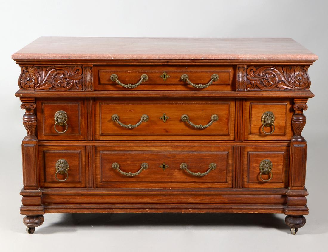 RENAISSANCE STYLE MARBLE TOP WALNUT CHEST