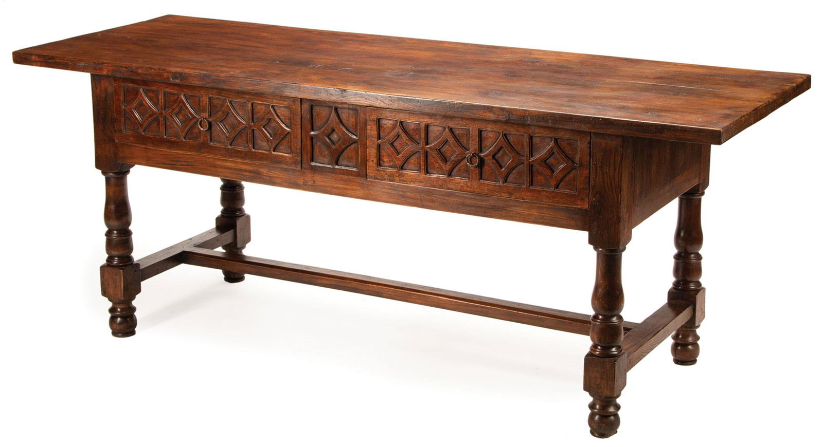 Oak Refectory Table, England, 18th century,Jacobean style refectory table, six turned and carved legs, box stretcher, carved and shaped apron,Mar 16, 2026Large Italian Style Oak Parquetry Monastery Table, 20th c., H.- 30 in., W.- 102 in., D.- 39 1/2 in.Mar 27, 2026C1450 Italian Renaissance Tuscany Dining Table1 day LeftFrench Renaissance Style Parquetry Oak Extension Dining Table, 19th c., H.- 28 3/4 in., W.- 62 3/4Mar 27, 202618th Century French Walnut Refectory TableMar 22, 2026French Charles X Inspired Low Table, 20th/21st c., H.- 19 in., W.- 47 in., D.- 25 1/2 in.Mar 26, 2026Antique 1900 French Henry II Renaissance Dining Table Burnt Umber Finish1 day Left2 Piece Dining TableMar 19, 2026French Provincial Oak Monastery Table, 20th c., H.- 31 1/2 in., W.- 86 1/2 in., D.- 34 1/2 in.Mar 27, 2026CHINESE ALTAR TABLEMar 14, 2026French Provincial Cherry Farm Table, late 19th c., H.- 30 in., W.- 65 in., D.- 35 1/4 in.Mar 27, 2026French Provincial Drop Leaf Farm Table, mid 19th c., H.- 30 1/4 in., W.- Open- 45 1/4 in, Closed- 27Mar 26, 2026French Louis XIII Chestnut Racetrack Dining Table Seven-Leg Antique Circa 1880Mar 20, 20262 Board Top Oak Farm Table2 days LeftFrench Louis XIII Style Walnut Low Table, mid 20th c., H.- 17 3/4 in., W.- 39 in., D.- 19 1/2 in.Mar 26, 2026