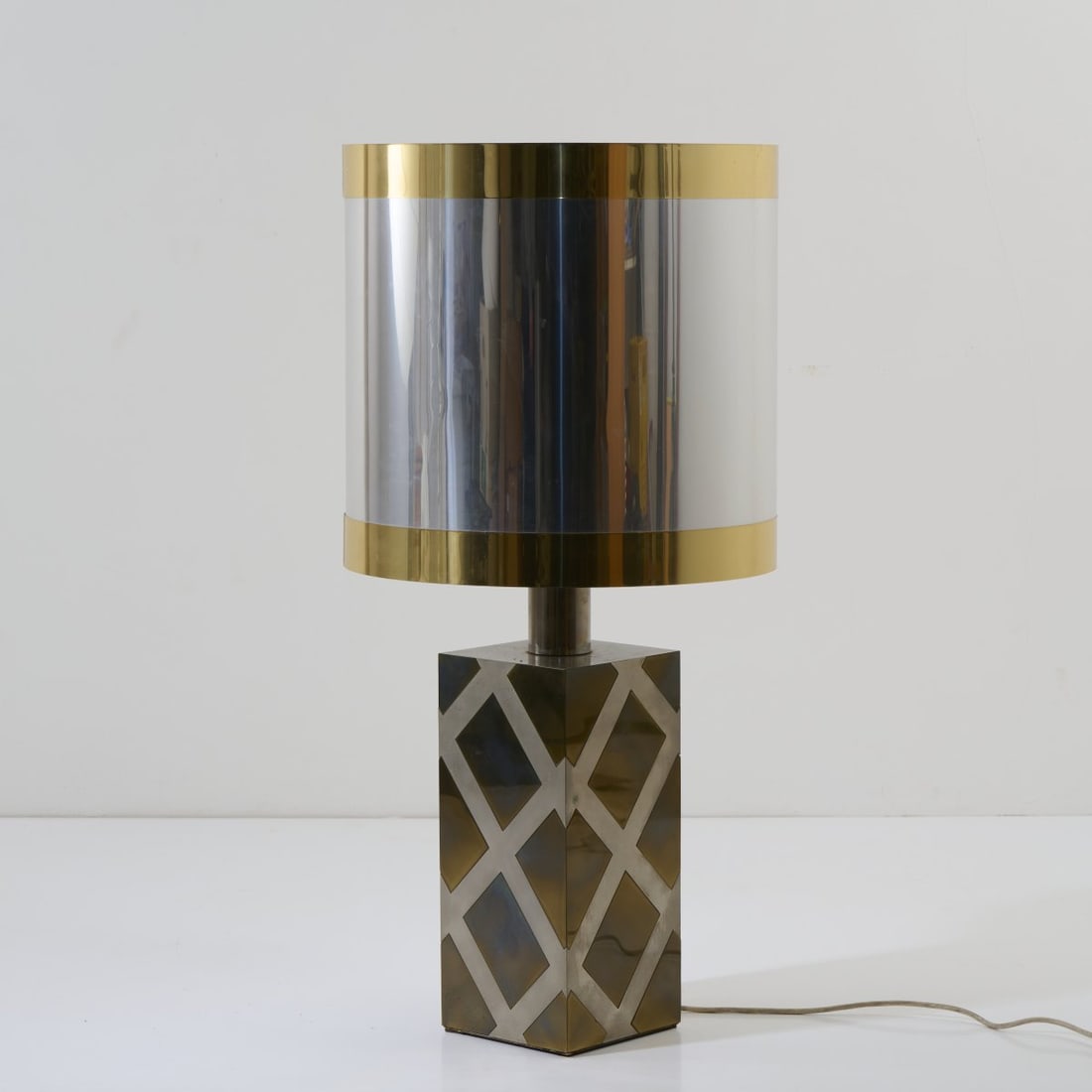 MID-CENTURY MODERN Table Lampcirca 1960nickel-plated metal, single three-way socket, metallic pa...MODERNIST Table Lamp1970sLucite, chromed metals, single three-way socket, metallic paper shade, ...MID-CENTURY MODERN Table Lamp1960sporcelain, brass, fabric shade, single socket, unmarkedheight ...MID-CENTRUY MODERN Table Lamp1960smilk glass, brass, paper shade, single socket, label 'Base Mad...A French Modernist Brass and Black Enamel Table LampA Castor Catherine Steel, Brass, and Marble Table LampFagerhults, Articulating Desk Lamp, Brass, Sweden, 1960sArmaturhantverk Göteborg, Articulating Floor Lamp, Brass, Fabric, Sweden, 1960sGAB, Table Lamp, Patianted Bronze, Sweden, 1940sOlle Alberius, Table Lamp, Blown Glass, Chromed Metal, Sweden, 1970sOBA, Swedish Modern, Desk Lamp, Brass, Metal,Sweden, 1950sEwå Värnamo, Adjustable Desk Lamp, Brass, Metal, Sweden, 1980sBoréns Borås, Brass, Metal, Table Lamp, Sweden, 1950sHigh Style Modern Lucite Acrylic and Brass Floor Lamp, Circa 1970High Style Modern Lucite Acrylic and Brass Floor Lamp, Circa 1970Mar 20, 2026Milo Baughman Style Mid-Century Modern Teak and Brass Table Lamp, Circa 1960sMar 31, 2026