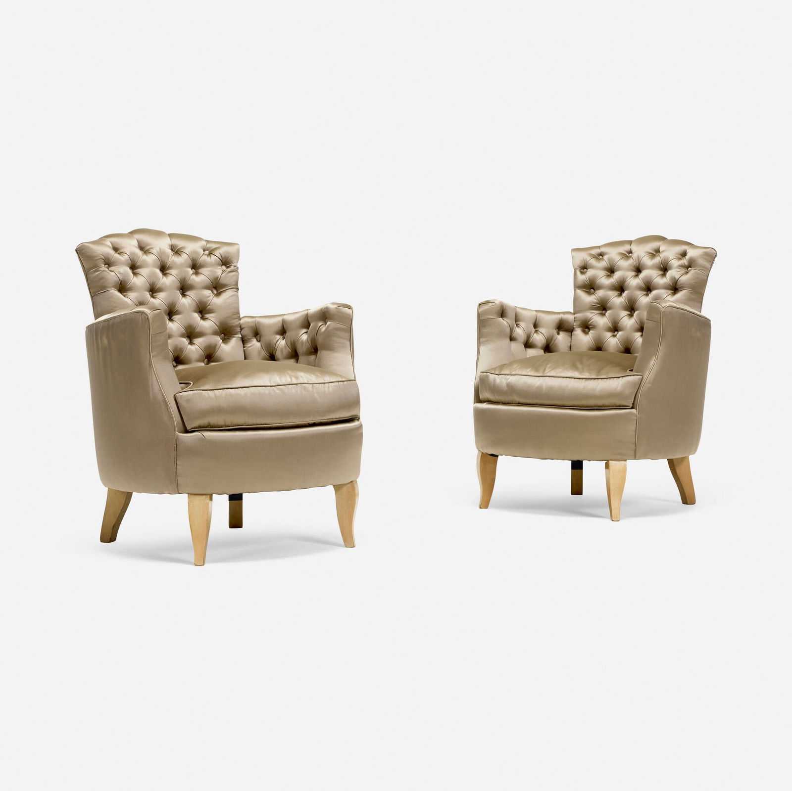 A Pair of Custom Barrel Back Swivel Chairs with Bouclé UpholsteryA Pair of Louis XIII Style Oak and Leather Wingback ArmchairsSlagelse Mobelfabrik, Beige Velvet, Beech, Lounge Chairs, Denmark, 1940sMilo Baughman, Swivel Chairs, Beige Upholstery, Walnut, USA, 1970sDanish Modern, Bentwood, Fabric, Lounge Chairs, Denmark, 1930sISA Bergamo, Camel Velvet, Bronze, Wingback Chairs, Italy, 1950sPaul McCobb, Ebonized Wood, Fabric, Lounge Chairs, USA, 1950sSet of Model 63970 Lounge Chairs by Asnago for G. PeggyGio Ponti (1891-1979) Pair of armchairs6 days LeftRomeo Sozzi x Promemoria "Aziza Alta" Armchairs, 2Mar 19, 2026Floral Silk Upholstered Chairs, 2Apr 07, 2026PAIR UPHOLSTERED LOUNGE CHAIRS C 1950 HAVING RECENT FABRIC WITH A GEOMETRIC PATTERN.Mar 25, 2026Modern Style Gray Suede Tub Chairs, PairApr 30, 2026Modern Style Gray Suede Tub Chairs, PairApr 30, 2026A PAIR OF SIMULATED ROSEWOOD AND UPHOLSTERED ARMCHAIRS, 19TH CENTURYMar 25, 2026Gio Ponti (1891-1979) Pair of armchairs6 days Left