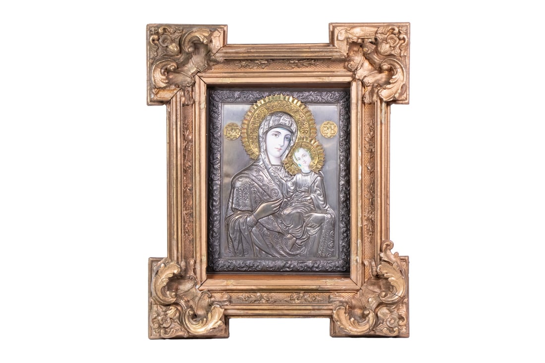 RUSSIAN ORTHODOX ICON, MARY AND CHRIST CHILDMar 26, 2026Vintage Print On Paper Holy Mother And Jesus Icon With Frame16 hrs LeftRussian Orthodox Icon, "Holy Protectress Of Russia"Apr 18, 2026Very Ornate Russian Icon - Saint Gold Framed / Jewels - Natalia Gorkovenko , Moscow 2016Mar 15, 2026Russian Orthodox IconApr 18, 2026Russian Orthodox Icon, "Holy Protectress Of Russia"Apr 18, 2026Russian .875 Silver Gilt Oklad Icon.9 hrs LeftICON OF THE MOTHER OF GOD OF KAZAN WITH .875 RIZAMar 26, 2026A Russian Icon with Silver OkladMar 15, 2026Madonna and Child painting on porcelainMar 19, 2026Russia Icon of the Mother of God of Tikhvinskaya with 84 Zolotniki Silver Octad - 19th century,6 days LeftRUSSIAN ICON OF THE THEOTOKO WITH .875 RIZAMar 26, 2026Genevieve Southerland (American/Alabama/Pennsylvania, 1895-1953), "Madonna and Child," H.- 29 1/4Mar 26, 2026Russian Gold Gilt Metal Icon "Mother of God with the Crucified Christ"Mar 28, 2026GREEK SILVER PLATED ICON OF VIRGIN MARY FRAMED9 hrs Left3 Wonderful Miniature Paintings of the MadonnaMar 19, 2026