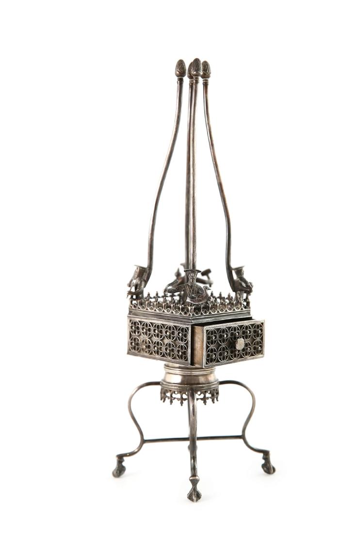 Silver Plated Ornate Oil Lamp Base W Candle Shade3 hrs LeftA SILVER HANUKKAH LAMP. Germany. In the manner of the 18th century.5 hrs LeftA MONUMENTAL STERLING SILVER HAVDALAH COMPENDIUM5 hrs LeftA SINGLE SILVER TORAH FINIAL BY PIETER ROBOL II. Amsterdam, 1757.5 hrs LeftA LARGE SILVER HAVDALLAH COMPENDIUM. Ottoman Empire, c. 19005 hrs LeftA LARGE SILVER FILIGREE SPICE TOWER. Berlin, c. 1880.5 hrs LeftA MASSIVE STERLING SILVER TORAH CROWN. American, early 20th century.5 hrs LeftA SILVER SPICE TOWER. Vienna, c. 18905 hrs LeftJudaica Very Fine & Heavy Sterling Silver Besamim3 hrs LeftGeorge I English Silver Thurible, Anthony Nelme6 days LeftJudaica Sterling Silver Mechanical Besamim3 hrs LeftA SILVER TORAH CROWN. Hungarian, 20th century.5 hrs LeftA LARGE FILIGREE SPICE CONTAINER. Ukraine. c.1850. Made completely of high grade spun filigree. Lac5 hrs LeftBrass Torah Crown, Damascene WorkFeb 25, 2026A MINIATURE SILVER HANUKKAH LAMP. Probably Dutch, 20th century5 hrs LeftA FINE FILIGREE SPICE TOWER. Poland, 19th century.5 hrs Left