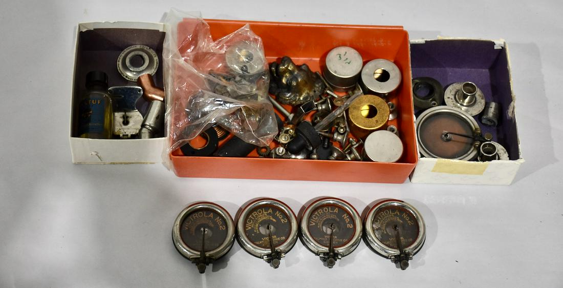 A large lot of 11 boxes of various gramophone and phonograph decoration and mechanic parts forOstantix Auctions4.4(13)€5005 days Left