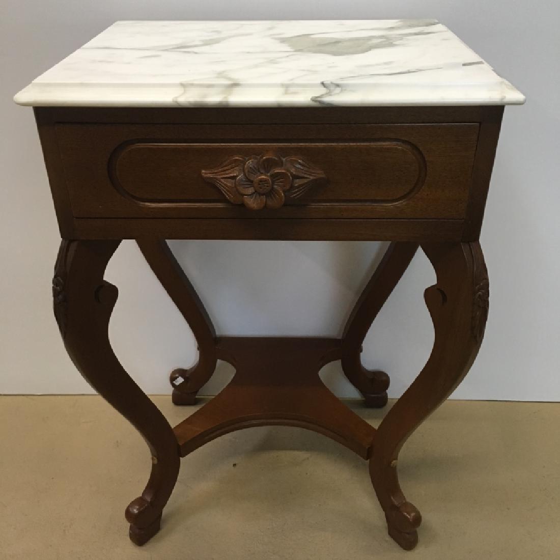 REPRODUCTION VICTORIAN MARBLE TOP END TABLE