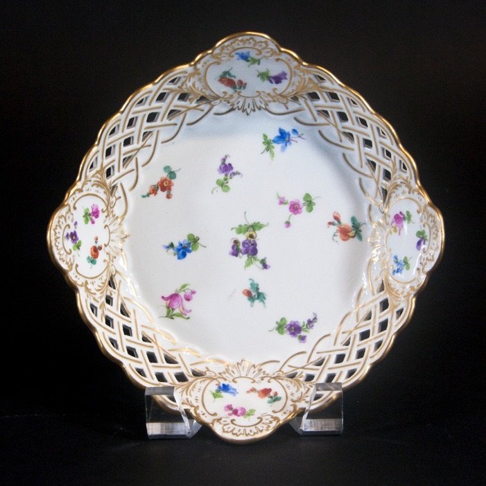 SoldA Meissen Reticulated Porcelain DishA Meissen Reticulated Porcelain Dish 19th/20th Century decorated with floral sprays. Diameter 9 3/4 inches. Sold to Benefit the Acquisition Fund of the Indianapolis Museum of Art at NewfieldsSee Sold Price