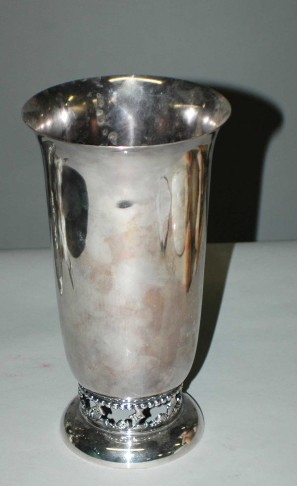 Reticulated silver plate vase.