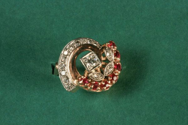 Retro 14k rose gold deco 14K Ruby, diamond ladies cocktail ring