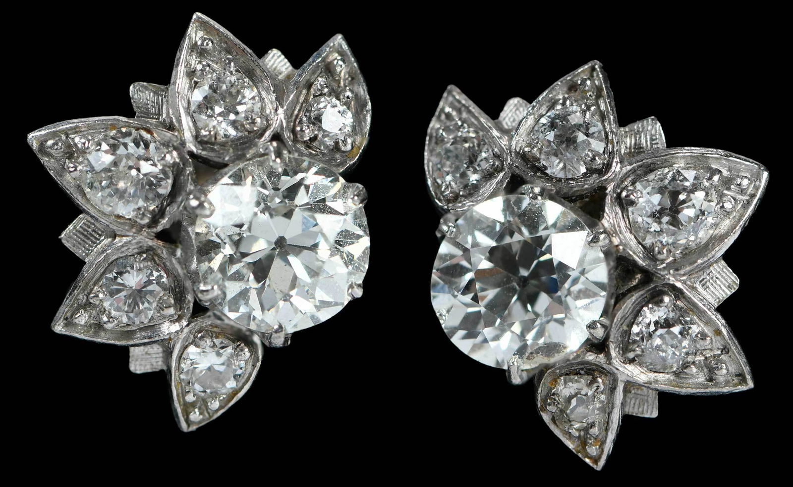 Vintage 1950's 18K White Gold Diamond Earrings 5.00 Ct.