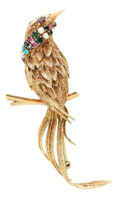 French 18K Yellow Gold Cardinal Bird Brooch with Ruby Diamond OnyxMynt Auctions4.4(848)$1008 hrs Left