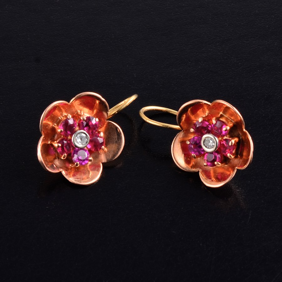 Retro ruby flower earrings