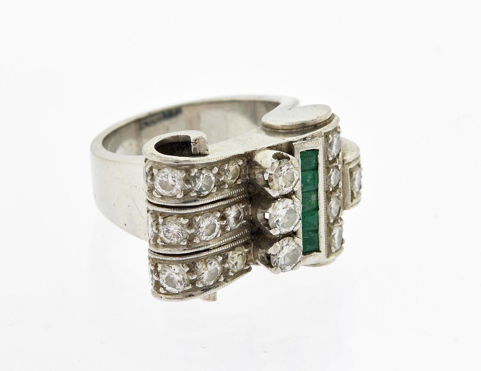 RETRO STYLE DIAMOND AND EMERALD RING.