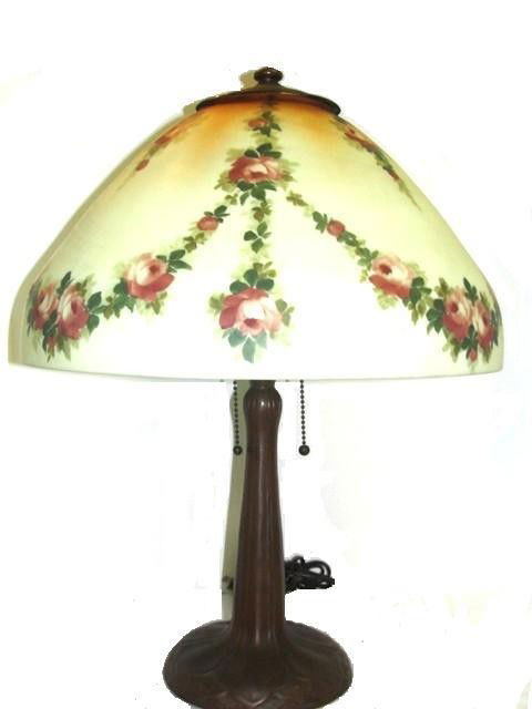 Reverse Hand Painted Handel Lamp With Swag