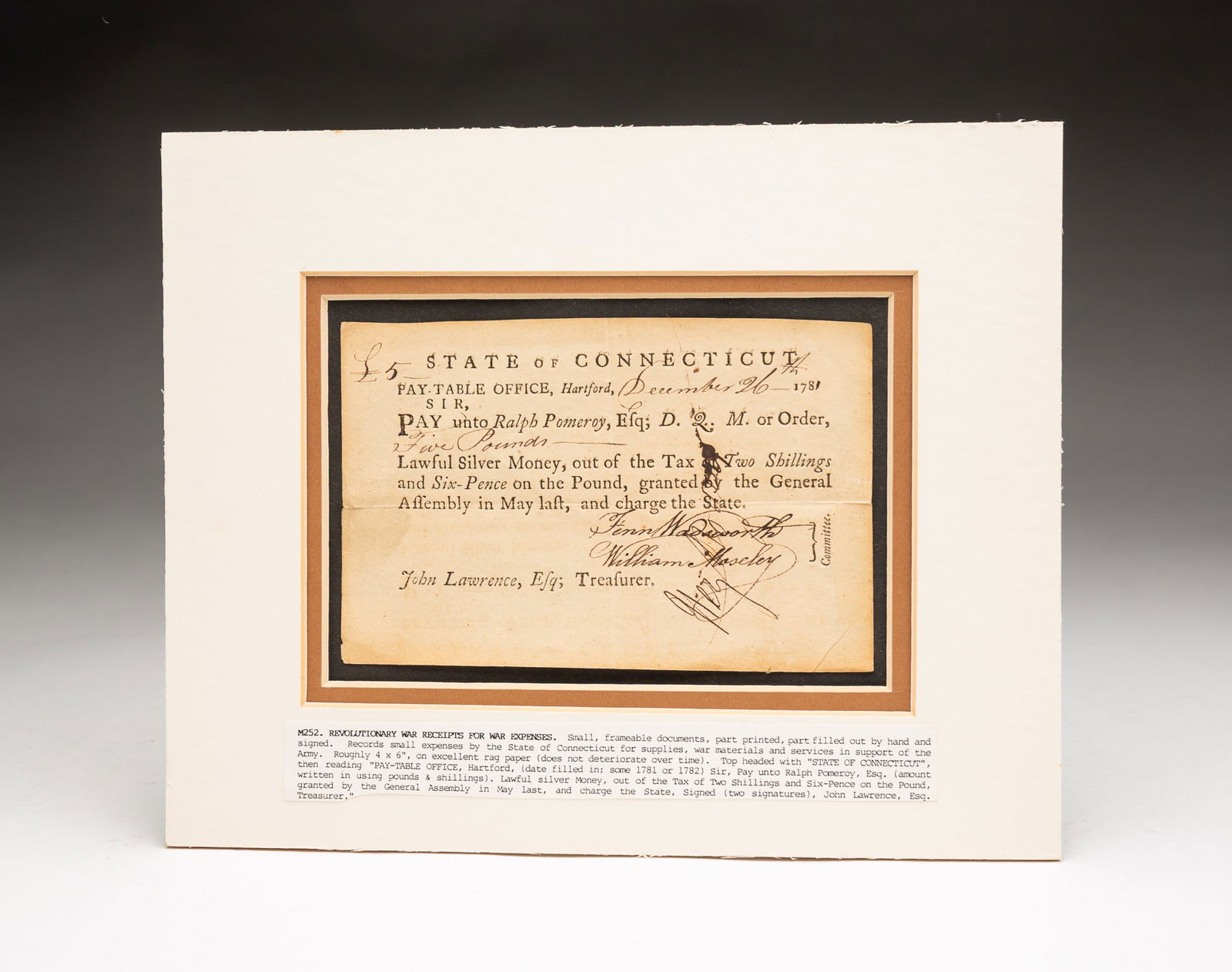 1780 Revolutionary War Army Document