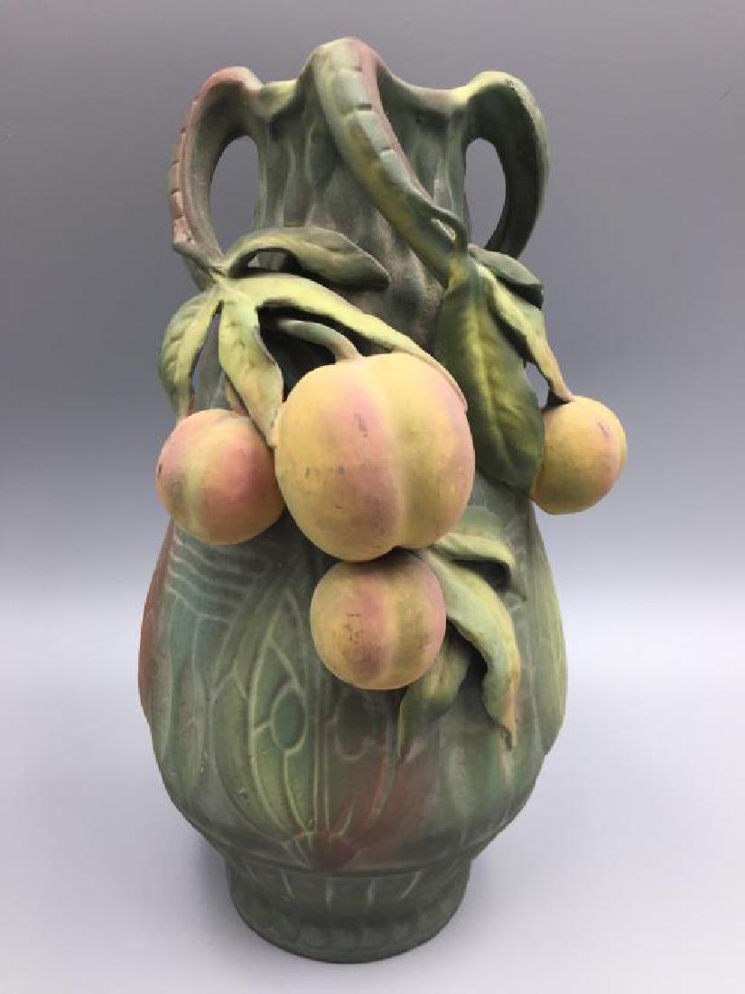 Sold2 Hand Painted Austria Porcelain Vases Hanging Peaches2 Hand Painted Austria Porcelain Vases Hanging Peaches in relief. Red eagle marking on base. Vintage. Size: 10.75h x 5.5wSee Sold Price