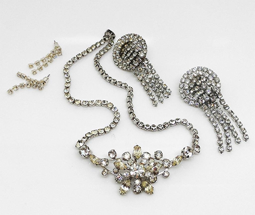 Lot of Crystal and Rhinestone JewelryMar 05, 2026Vintage Unsigned Key Butterfly Sparkling Rhinestone Brooch Pins Lot Of 52 days LeftLot of Assorted Sterling Silver JewelryMar 05, 2026Vintage Jewelry Group Lot of Aurora Borealis Necklace Bracelet And Clip EarringsMar 05, 2026Lot 2 Silver Tn Crystal Chandelier Dangle Earrings1 day LeftVintage Of Unsigned Rhinestone AB Crystals Clip On Earrings Lot Of 4Feb 16, 2026Vintage Star And Unmarked Glass Rhinestone AB Crystal Clip On Earrings Lot Of 4Jul 21, 2025Vintage 7 Rhinestone Earrings Bracelet Lot, Weiss, DB, AustriaVintage Lot Rhinestone Shoe Clips, Buckles, Brooches - 8 Pcs, Repurpose/Repair/WearCOSTUME JEWELRY LOT5 days Left(11) Mixed Fashion LotFeb 24, 2026Faux Pearl Mixed LotFeb 24, 2026Assorted Vintage Clip On Earrings Lot2 days LeftLot of Assorted Vintage-Style Fashion JewelryFeb 28, 2026Large Collection of Vintage Rhinestone Costume Jewelry9 hrs Left11pc Mixed Metal and Rhinestone Brooch, Earring, Pin, and Pendant JewelryFeb 24, 2026