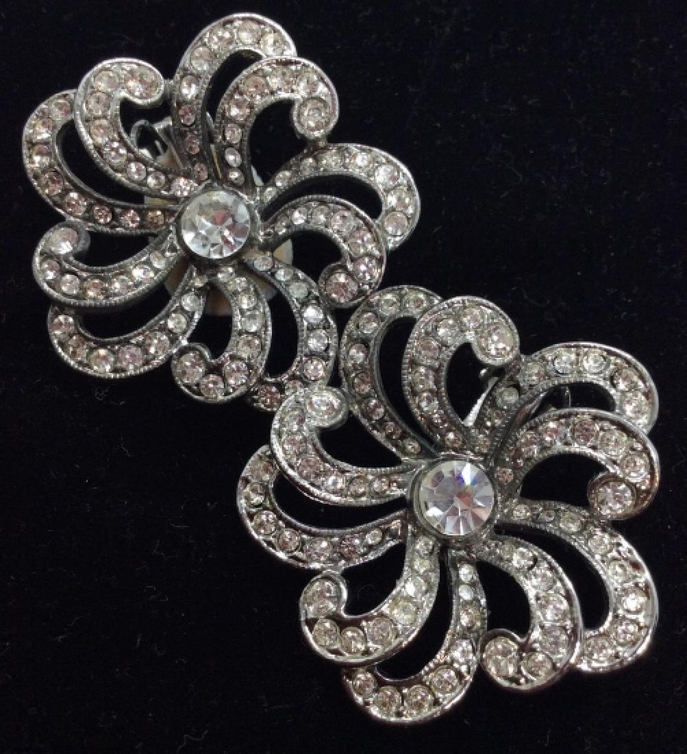 Rhinestone Floral Ear Clips / Earrings