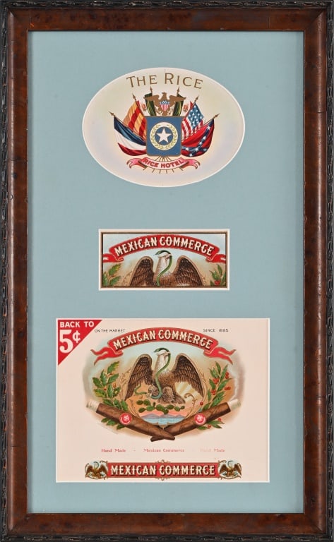 Rice Hotel Mexican Commerce Framed Litho Labels