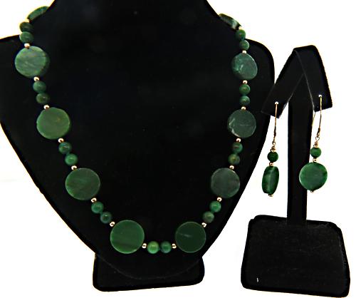 Rich Green Agate Bead Neckace and Earring Set