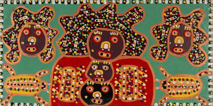 SoldRichard Burnside. African Kings.Richard Burnside. African Kings. c. 1989. Not signed. Paint on board. Minor oil crazing, otherwise excellent condition. 48"w x 24"h. Provenance: Larry and Jane Schlachter Collection. Est. $1,000-1,500See Sold Price