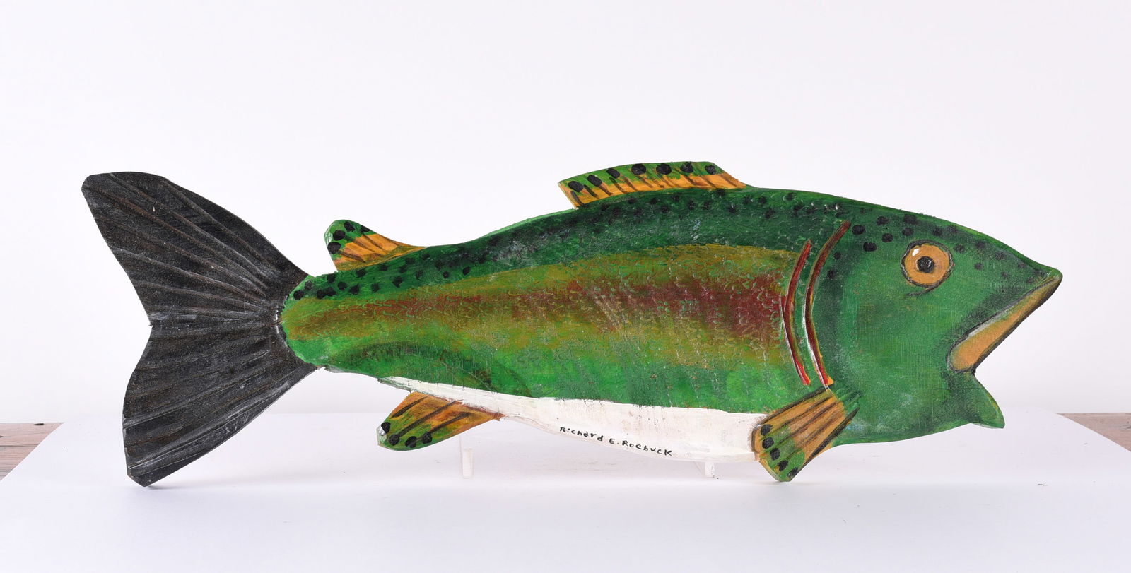 Folk Art Fish Decoy, painted wood body with tin fins, 16"X8"X2"Synesael Davies Auctions4.7(205)$100(4 bids)1 day Left