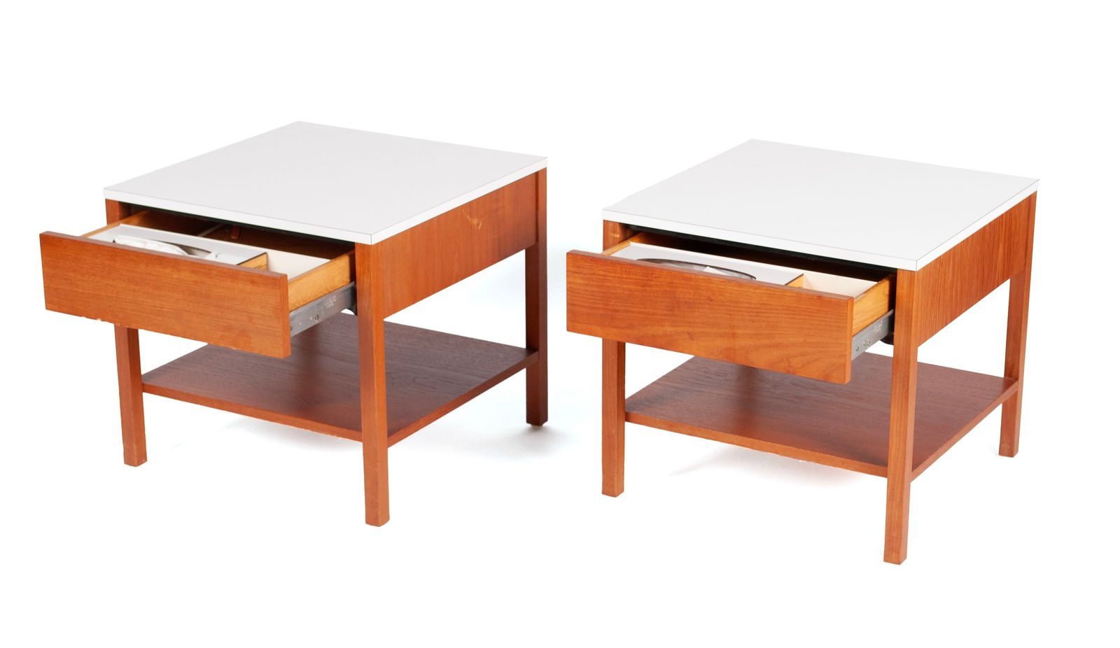 Kipp Stewart + Stewart MacDougal, Tray-Top Side Tables (2)6 days LeftTyler Hays for BDDW Side Tables, PairMay 14, 2026Edward Wormley (1907-1995), A pair of nightstands model 5363 for Dunbar, mid-20th century2 days LeftSvend Madsen for Falster Mobelfabrik Teak NightstandsApr 11, 2026Pair attrib Harvey Probber Surfboard Side Tables2 hrs LeftGeorge Nelson x Herman Miller Nightstands, 2May 14, 2026A William Richardson coffee table and two nesting tables2 days LeftPair of Louis Philippe Inspired Cherry Nightstands, 21st c., Each- H.- 25 1/2 in., W.- 18 in., D.-4 days LeftAn Edward Wormley (1907-1995), A trapezoidal end table model 4809 for Dunbar, mid-20th century2 days LeftDanish Teak Drop Front NightstandsMar 31, 2026Vintage American of Martinsville Walnut End TablesMar 31, 2026Set of Three Mahogany Nesting Tables3 days LeftNANNA & JORGEN DITZEL FOR SOREN DANISH TEAK DESKMar 31, 2026Adam Rogers for CB2 Mahogany Nightstands, PairMay 07, 2026BEDSIDE TABLES DIRECTOIRE STYLE, A PAIRApr 15, 2026Pair of End Tables by Lane FurnitureMar 31, 2026