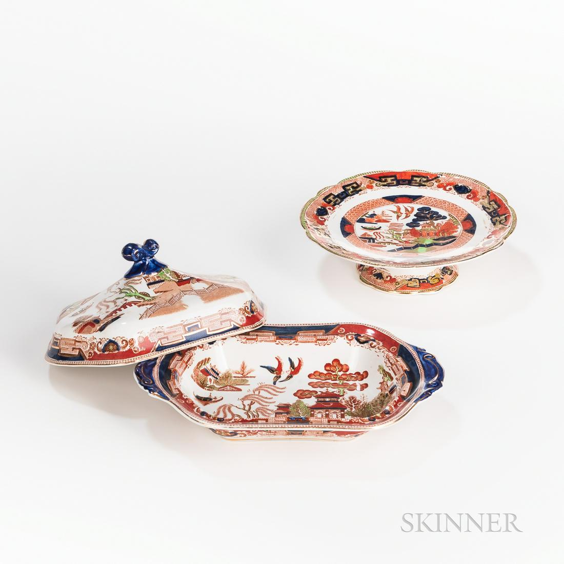 Ridgways Gaudy Willow Pattern Tureen and Comport,