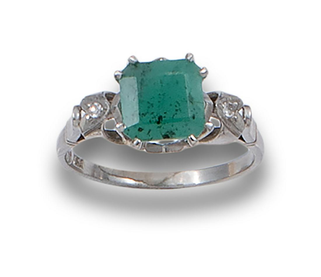 PLATINUM EMERALD AND DIAMOND RING, RETRO PERIOD