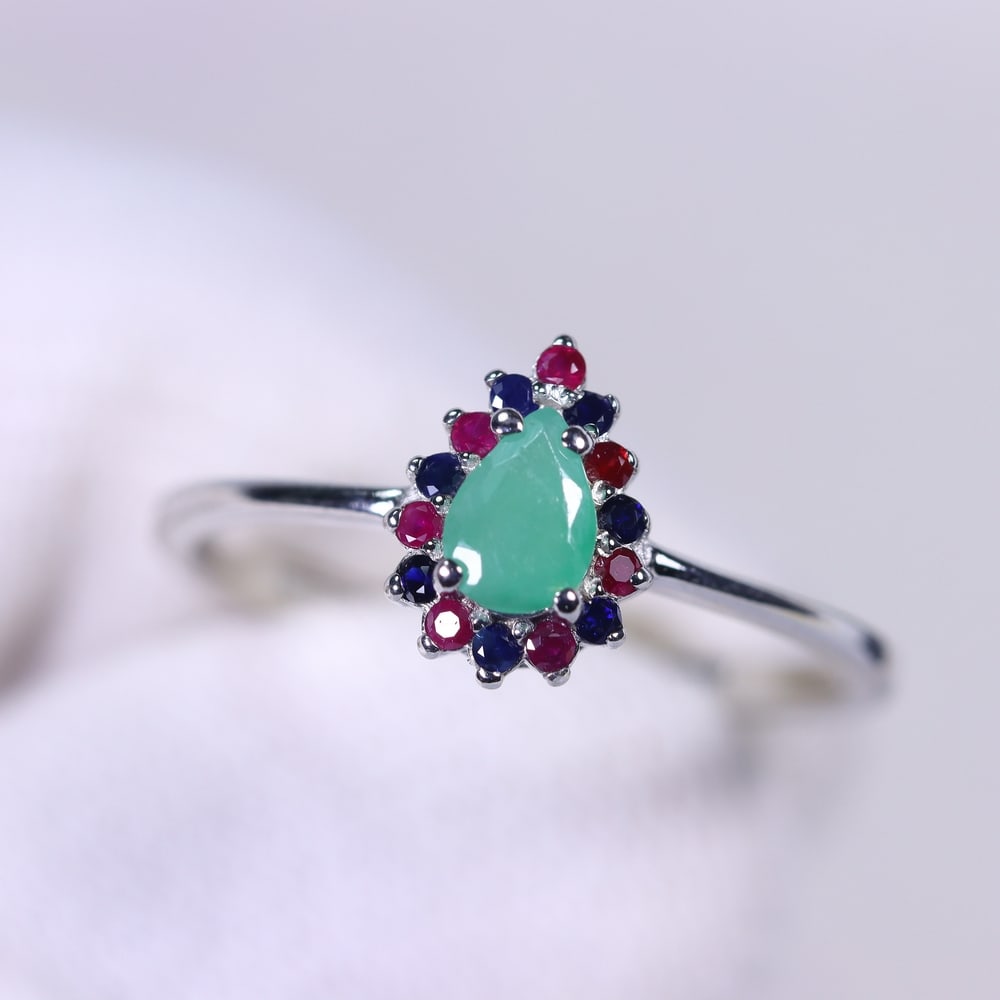 Ring US8.5 Emerald Ruby & Sapphire - 925 Sterling Silver