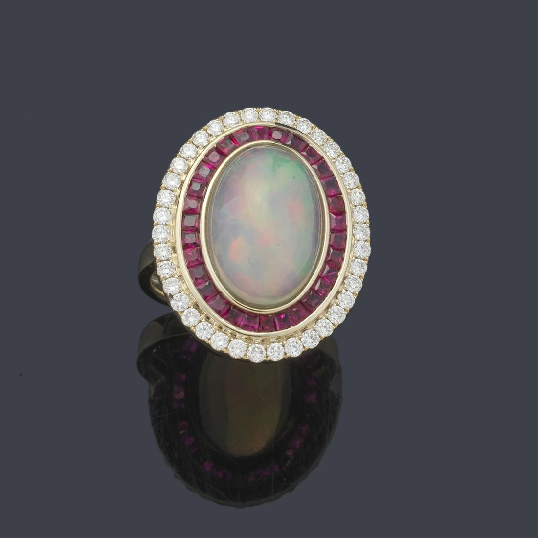18K White Gold Ladies Ring with 22.41ct Boulder Opal and 1.16ct tw Adjacent DiamondsRiverside Galleries4.4(203)$504 days Left