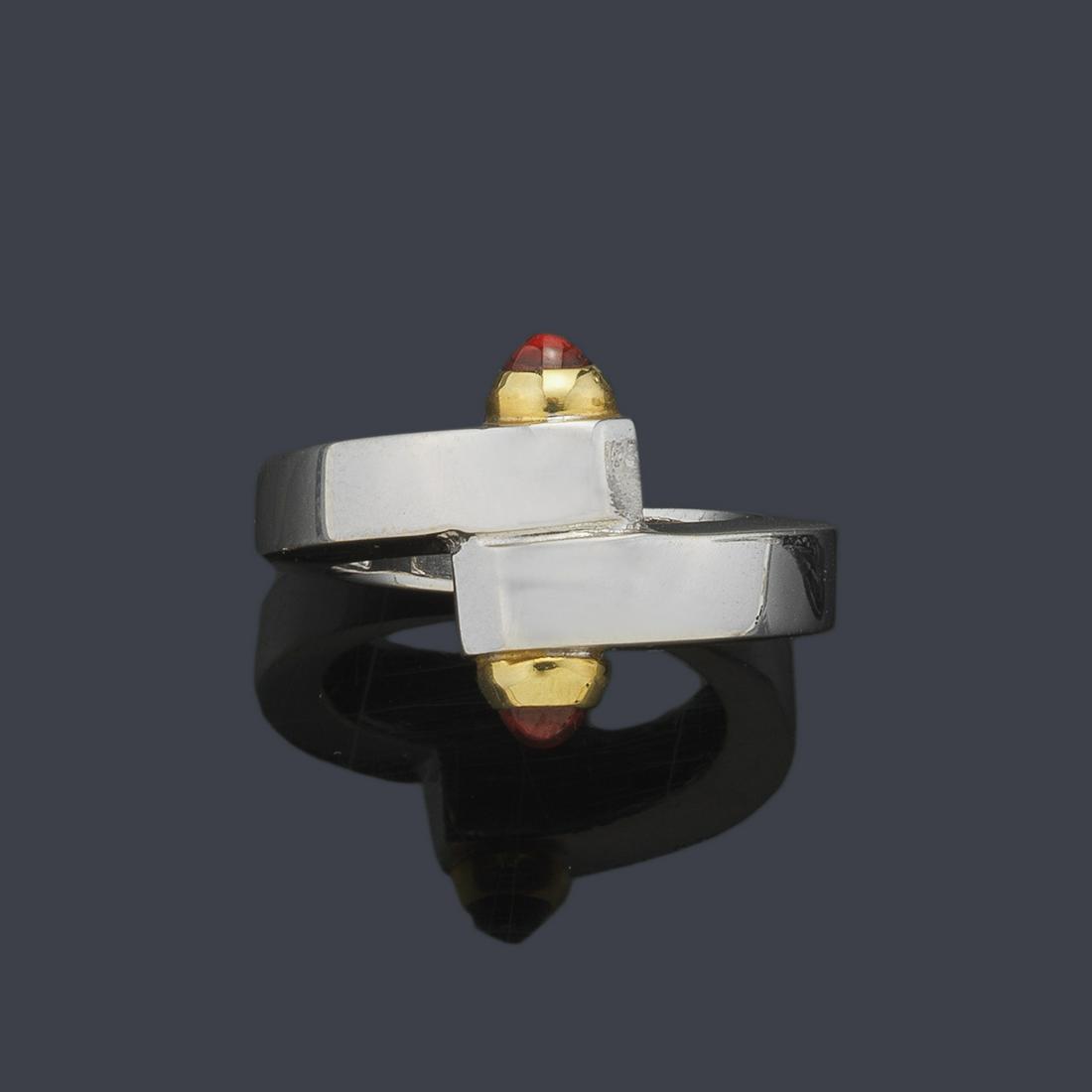Ring with colored gem cabochons