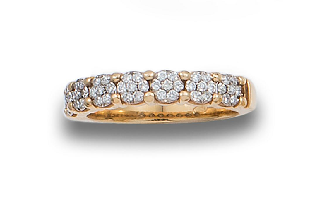 RING WITH DIAMOND ROSETTES, IN YELLOW GOLD