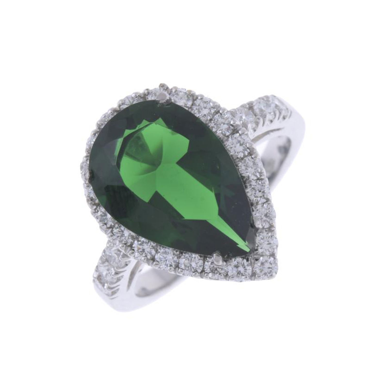 RING WITH GREEN TOPAZ AND DIAMONDS.