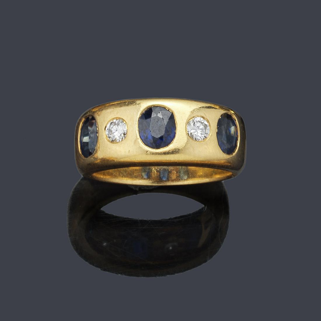 Ring with three sapphires and two diamonds