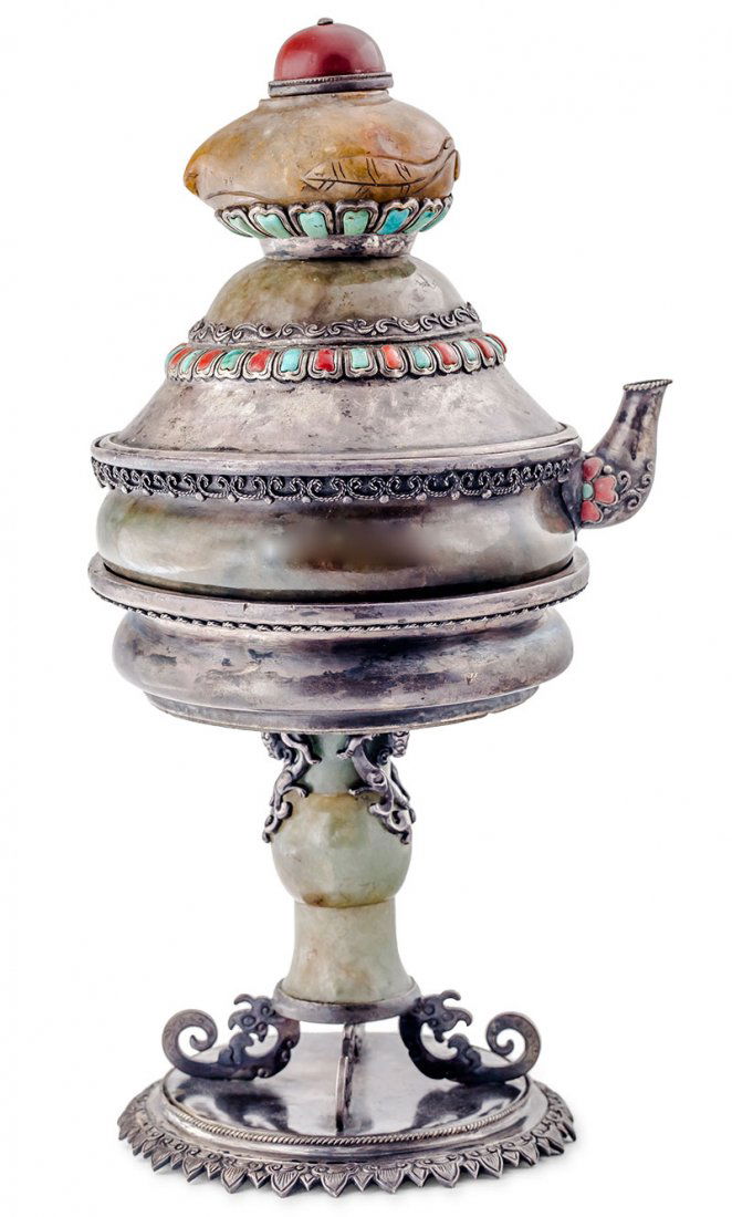 ANTIQUE CHINESE SILVER AND JADE JAR.Feb 25, 2026A Chinese Silver and Turquoise Inlaid Ritual 'Ding' Food VesselFeb 22, 2026Tibetan Silver and Gilt Kapala, Double-Vajra FinialFeb 27, 2026Pre-Ming Dynasty Bronze Ritual Vessel Inlaid with TurquoiseFeb 28, 2026Large Sino Mongolian Mixed Metal, Turquoise, Jade, And Coral CensersMar 03, 2026Footed Silver Chocolate PotFeb 24, 202619th Century Indian Hand Made Silver Rose Water Pot4 days LeftSino Mongolian Mixed Metal, Turquoise, Jade, And Coral TeapotMar 03, 202619th Century Persian Qajar Silver, Ruby & Turquoise Hookah Part4 days LeftAn Exquisite Silver Double-Ears Gourd CenserMar 04, 2026A ARCHAIC JADE TRIPOD LIDDED CENSERMar 05, 2026An Exquisite Archaic Jade Chi-Dragon Pattern GobletMar 05, 2026A LATE 19TH CENTURY OTTOMAN TURKISH SILVER COFFEE POT5 days LeftA 19TH CENTURY CHINESE TWIN HANDLED SILVER VASE AND COVER Qing. 151 grams. 12 cm x 10 cm.7 hrs LeftAN UNUSUAL 19TH CENTURY ISLAMIC SILVER INCENSE BURNER AND COVER decorated with Kufic script. 133 gra7 hrs LeftA Rare Silver Figure and Dragon Pattern EwerFeb 28, 2026