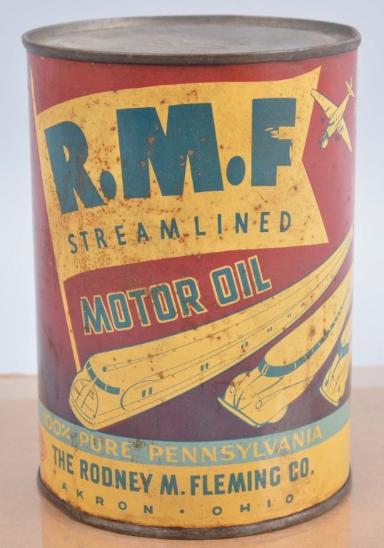 R.M.F. Streamlined Motor Oil One Quart Metal Can.