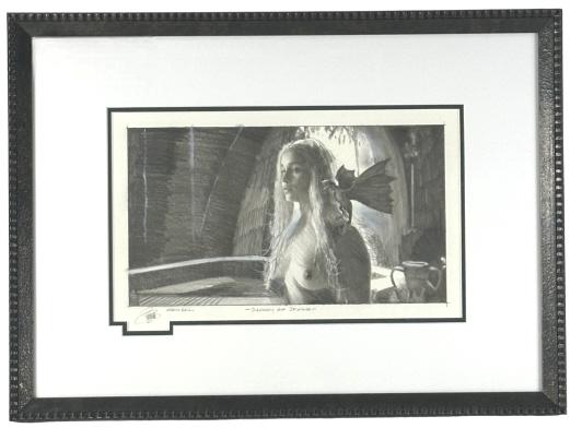 Robert Bailey "Daenary with Dragon" Framed Pencil Drawing. Signed Robert Bailey lower right. Framed