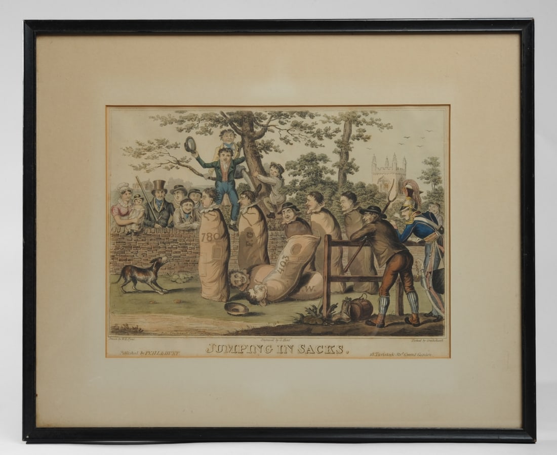 Robert Cruikshank etching, "Jumping In Sacks"