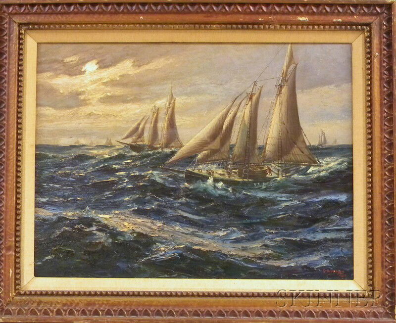 Antique early 20C American oil paintingMar 22, 2026Wesley Elbridge Webber (American, 1839-1914) Shipping in the Outer HarborHarry Hambro Howe (MA,1886-1966) oil paintingMay 03, 2026Rudolph Guba (Germany,US,1884-1950) oil paintingApr 12, 2026W.C. KENT (AMERICAN)1 hr LeftCharles Robert Patterson (American, 1875-1958) - The Sea WitchMar 07, 2026Richmond K. Fletcher, "In the Firth of Fourth", Oil on CanvasMar 07, 2026Robert Sanders (US,b 1950) oil paintingMar 15, 2026ROGER CHAPELET (France, 1902/3-1995), "Surprise -Tatiana"., Oil on canvas, 26" x 36". Framed 36" x4 days LeftMARSHALL JOHNSON, JR. (Massachusetts, 1850-1921), Vessels in a channel. Oil on canvas 14" x 18". Fra4 days LeftJOHN MELZA SITTON (GA/NY/FL, 1907-1998)1 hr LeftROBERT SALMON (Massachusetts, 1775-1844), "Lugger in the Wind"., Oil on cradled board, 16.5" x4 days LeftHenry Hallam "Ships at Sea" Oil on CanvasApr 07, 2026AMERICAN SCHOOL (19th Century,), Ship in distress., Oil on canvas, 20" x 28.25". Framed 27" x 35".4 days LeftAlexander Nelke (Estonian/American, 1894-1974), Clipper Ships at Full SailMar 14, 2026Richard Dey De Ribcowsky (Bulgarian/American, 1880-1936), Moonlit Seascape with Sailing ShipsMar 14, 2026