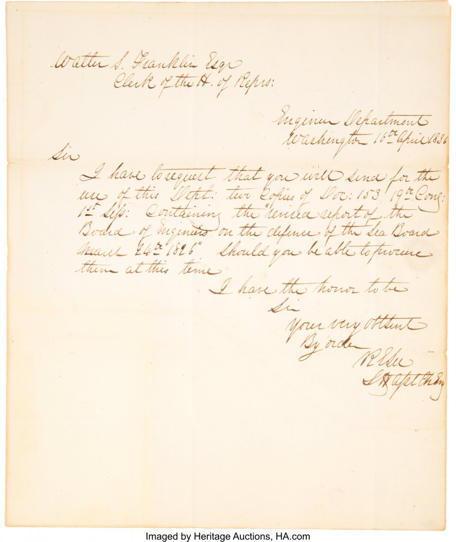 ROBERT E LEE AUTOGRAPH LETTER SIGNED.Mar 01, 2026ROBERT E LEE LETTER SIGNED.Mar 01, 20261863 George Dixon happy enemy retreated, etc.Mar 02, 2026WARTIME ROBERT E LEE AUTOGRAPH LETTER SIGNED.Mar 01, 2026ROBERT E LEE AUTOGRAPH LETTER SIGNED.Mar 01, 2026FINE EARLY WARTIME ROBERT E LEE AUTOGRAPH LETTERMar 01, 2026Alexander Hamilton Letter Signed. One page, 8 x5 days LeftATTRACTIVE & RARE WARTIME ROBERT E LEE LETTER TOMar 01, 2026William Thornton 1817 Washington DC Capital Architect Signed Manuscript Document Richard Bland LeeMar 29, 2026[Battle of the Little Bighorn]. Edward W. Smith5 days LeftJefferson Davis, Fort Sumter, Lincoln InaugurationMar 02, 2026Declaration Signer William Floyd Autograph Lette5 days Left1864 Daniel Gracy B. Co. 97th PA Infantry litersMar 02, 2026Letter & Lock of Hair Soldier VA 5th InfantryMar 02, 2026[Civil War]. Captured Contraband Signed Statemen5 days LeftJohn Benjamin Lewis Surgeon & other CT lettersMar 02, 2026