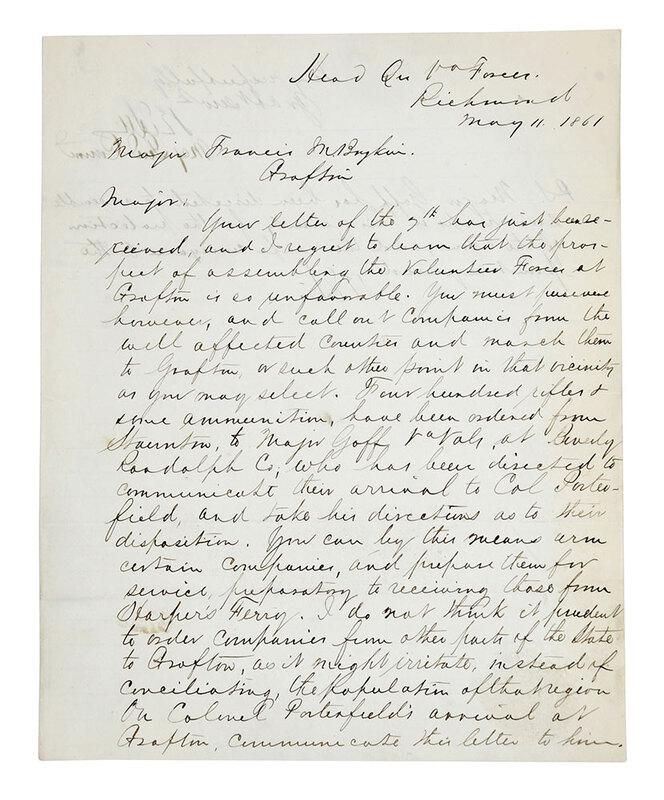 LINCOLN, Mary Todd (1818-1881). Autograph letter signed ("Mary Lincoln") to Caroline Wright,Mar 26, 2026AUTOGRAPHED LETTER SIGNED "A. LINCOLN" TO REV. GEORGE STUART 11.75" x 8.75". Unframed.Apr 09, 2026LINCOLN, Abraham (1809-1865). Manuscript legal document signed ("A. Lincoln") in the case of MaryMar 26, 2026LINCOLN, Abraham (1809-1865). Autograph legal document signed twice ("A. Lincoln" and "AbrahamMar 26, 2026LINCOLN, Mary Todd (1818-1882). Autograph letter signed ("Mrs. L") to Secretary of War Edwin M.Mar 26, 2026LINCOLN, Mary Todd (1818-1882). Autograph letter signed ("Mary Lincoln"), to B.B. French,Mar 26, 2026[Civil War] Porter, David D. Autograph Letter, signed[Civil War] Sherman, William T. Autograph Letter, signed[Civil War] Sherman, William T. Autograph Letter, SignedPaulding, Hiram. Autograph ManuscriptBenjamin Harrison ALS - Indianapolis, 18771 day LeftGeorge G. Meade ALS1 day LeftWilliam T. Sherman ALS, 18791 day LeftCONFEDERATE GENERALS LEONIDAS POLK AND LLOYD TILGHMANMar 27, 2026(MILITARY--CIVIL WAR.) Lewis Hazzard. Letter as a member of the 29th Connecticut Colored Infantry.2 days Left(MILITARY--CIVIL WAR.) Letters by a lieutenant in the 22nd United States Colored Troops. Virginia,2 days Left