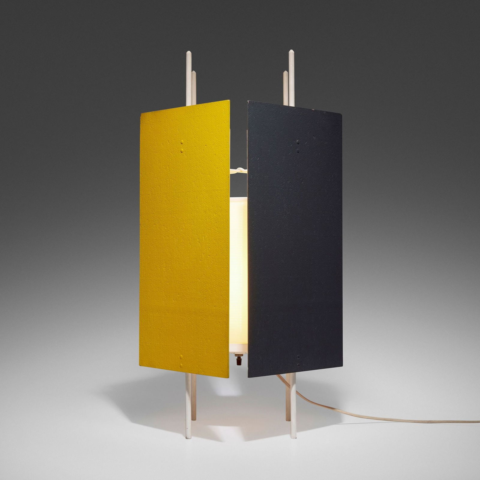 Max Ingrand (Bressuire 1908 - Parigi 1969) Table lamp model "1853". Produced by Fontana Arte, Milan,Max Ingrand (Bressuire 1908 - Parigi 1969) Table lamp model "1853". Produced by Fontana Arte, Milan, 1954. White lacquered aluminum and white satin glass. (h 53.5 cm.) Literature G. Gramigna, Le fabbr