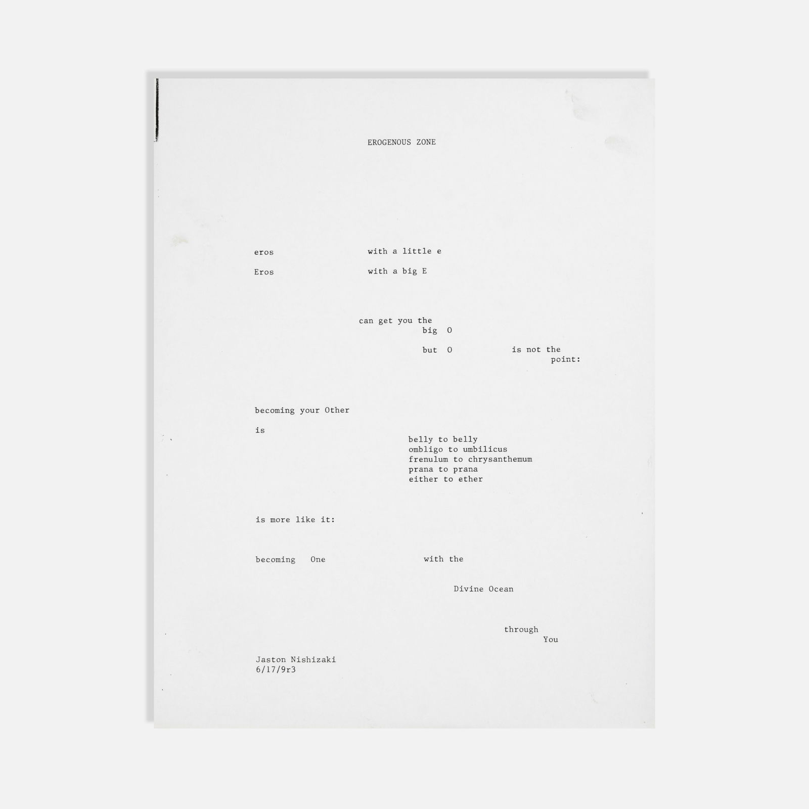 Robert Kiyoshi Nishizaki, Erogenous Zone