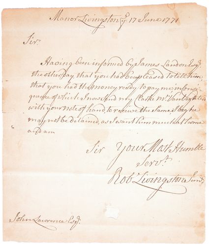 1798 Manuscript Bail Supreme Court New YorkAlexander Hamilton Letter Signed. One page, 8 xFeb 26, 2026Alexander Hamilton Letter Signed. One page, 8 xFeb 26, 2026Alexander Hamilton Letter Signed. Two pages, 7 1Feb 26, 2026George Washington Autograph Letter Signed. One pFeb 26, 2026George Washington Signed Medical Discharge, Moses DowningFeb 25, 2026Charles Thomson Letter Signed. Two pages, 7 3/4Feb 26, 2026Duportail, Amer. Rev. War Chief Engineer, Signed Military Directive Dating From French Revolution4 days LeftJefferson Davis Confederate States America letterMar 02, 2026John Benjamin Lewis Surgeon & other CT lettersMar 02, 2026Fort Constitution – War of 1812 Era Battalion Orders with 2 John A. Dix Orders – ManuscrHoratio Nelson Signed Manuscript Orders. Two pagFeb 26, 2026Benjamin Waterhouse to Elbridge Gerry – Physician & Smallpox Pioneer – Autographed 3-PagAndrew Jackson ALS as Pres. to Washington Mayor Van Ness4 days LeftGeorge Washington Clipped Signature. 6 x 2 incheFeb 26, 2026Gerrit Smith Abolitionist Indenture AgreementMar 02, 2026