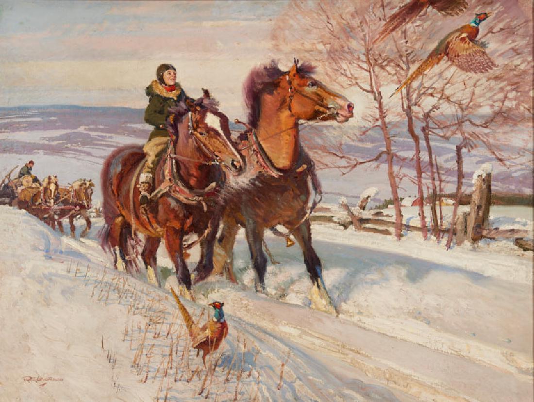 SoldRobert LougheedSteeplechase Horse Race (Swords Point to Win) 20" x 24" oil on panel signed lower left 25" x 29" overall with the frameSee Sold Price