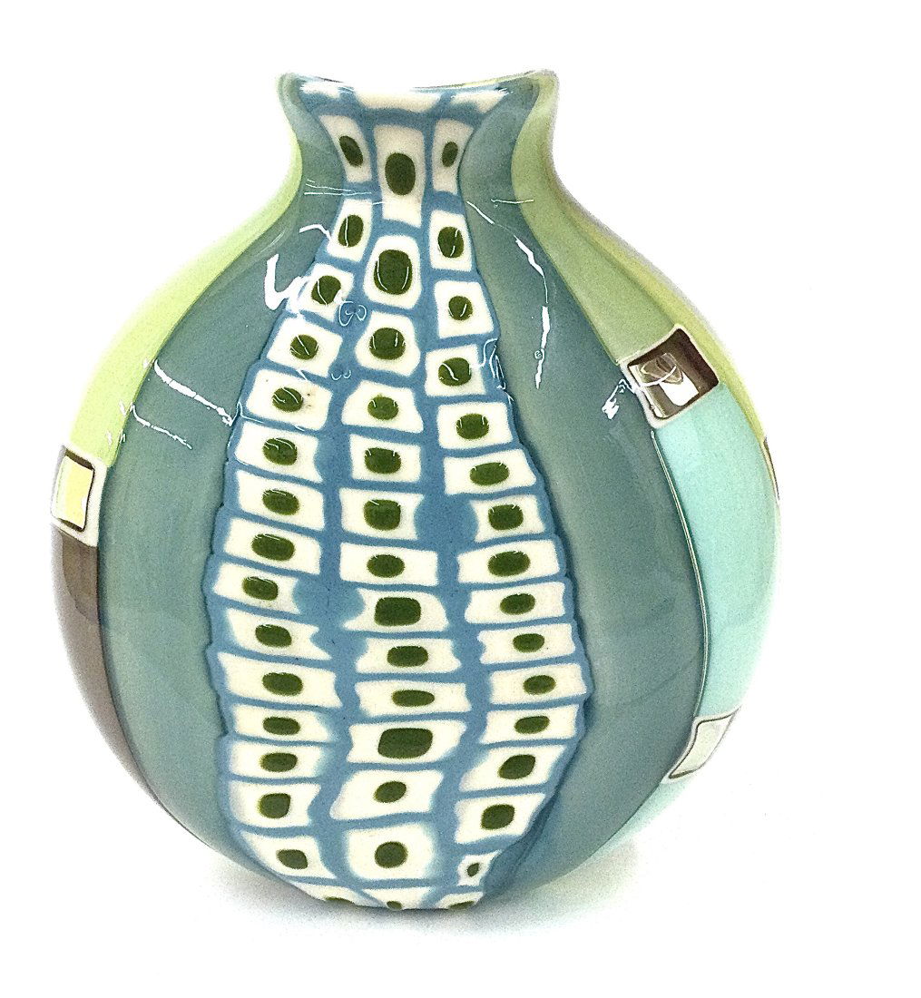 Robin Mix Murano Style Murrine vase signed and dated