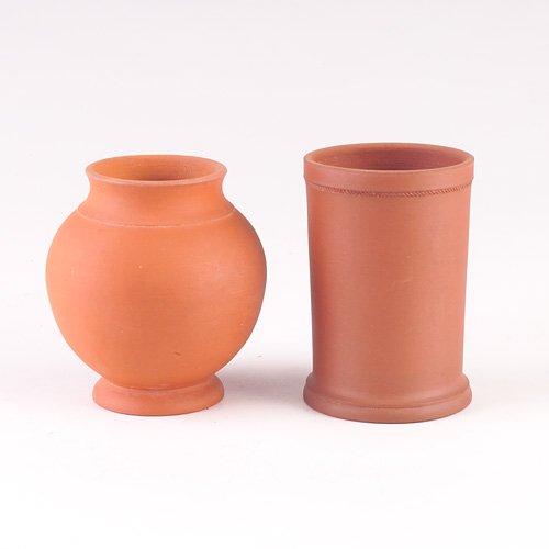 ROBLIN Two small redware vases, one cylindrical wi