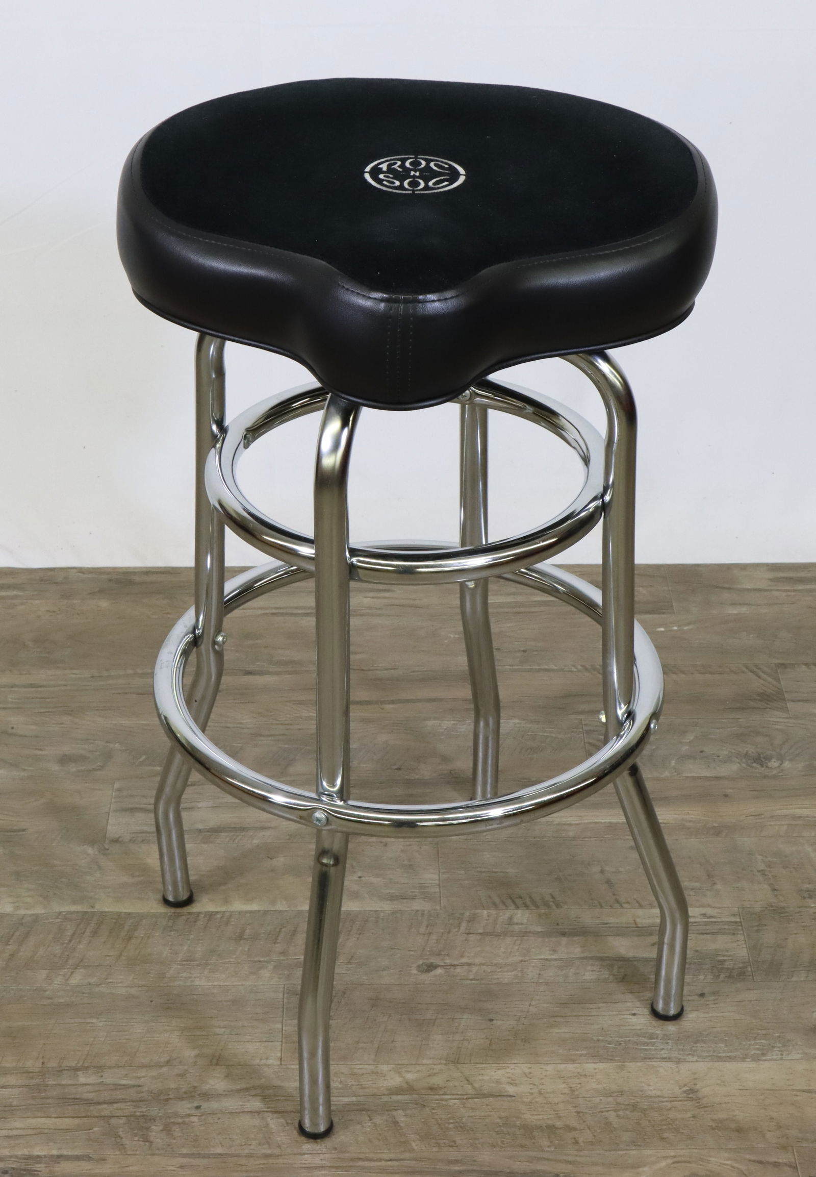 SoldROC-N-SOC DRUM THRONE WITH MOTORCYCLE STYLE SEATROC-N-SOC DRUM THRONE WITH MOTORCYCLE STYLE SEAT, FEATURING A COMFORTABLE PADDED DESIGN AND ADJUSTABLE CHROME BASE WITH DOUBLE-BRACED LEGS FOR STABILITY. MEASURES APPROXIMATELY 17" WIDE. -VERY GOOD PRSee Sold Price